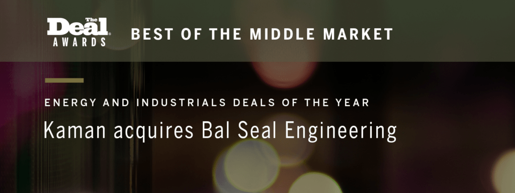 Description: On Nov. 5, Kaman Corp. agreed to pay $330 million to acquire Bal Seal Engineering Inc., a Foothill Ranch Calif-based, family owned business. The deal came after an auction for the business, which produces custom-engineered sealing, connecting, conducting and shielding solutions for manufacturers. The deal, which closed Jan. 3, bolstered its position in the aerospace components supply space and extended it into new end markets in the medical tech and industrial sectors. Neal J. Keating, Chairman, President and CEO of Kaman touted the acquisition at the time for “expanding the breadth of our product offering, increasing our exposure to attractive high growth markets, and driving meaningful near-term margin and cash flow accretion.”